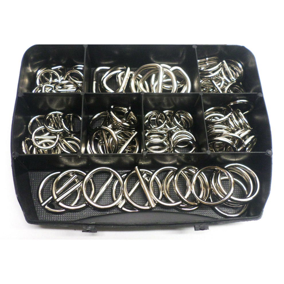 Assortment box nickel-plated rings 126 pieces