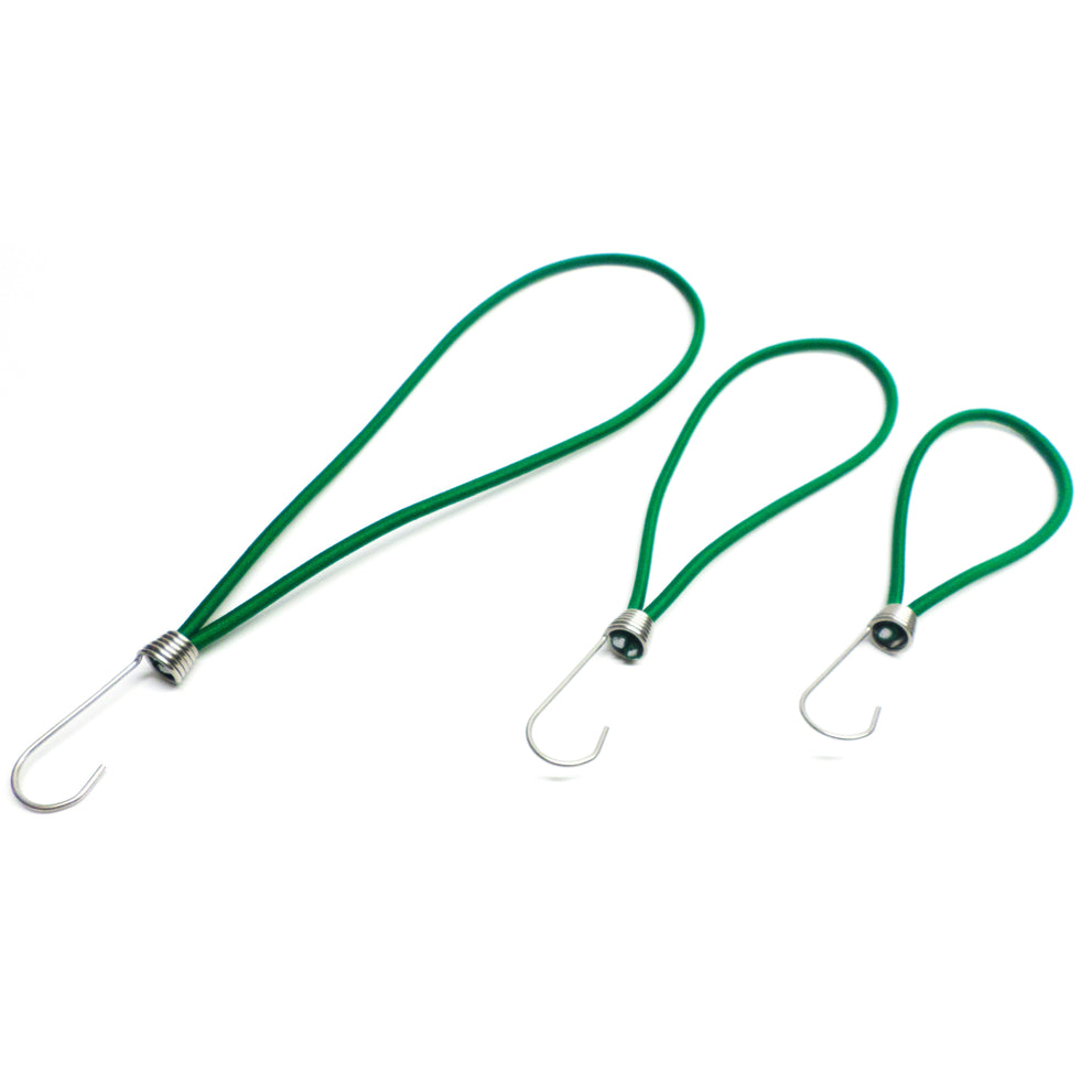 Tension rubbers 170-250mm green with stainless steel hook
