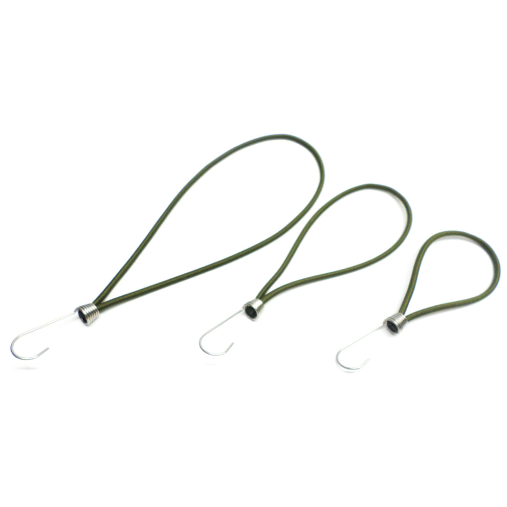 Tension rubbers 170-250mm olive green with stainless steel hook