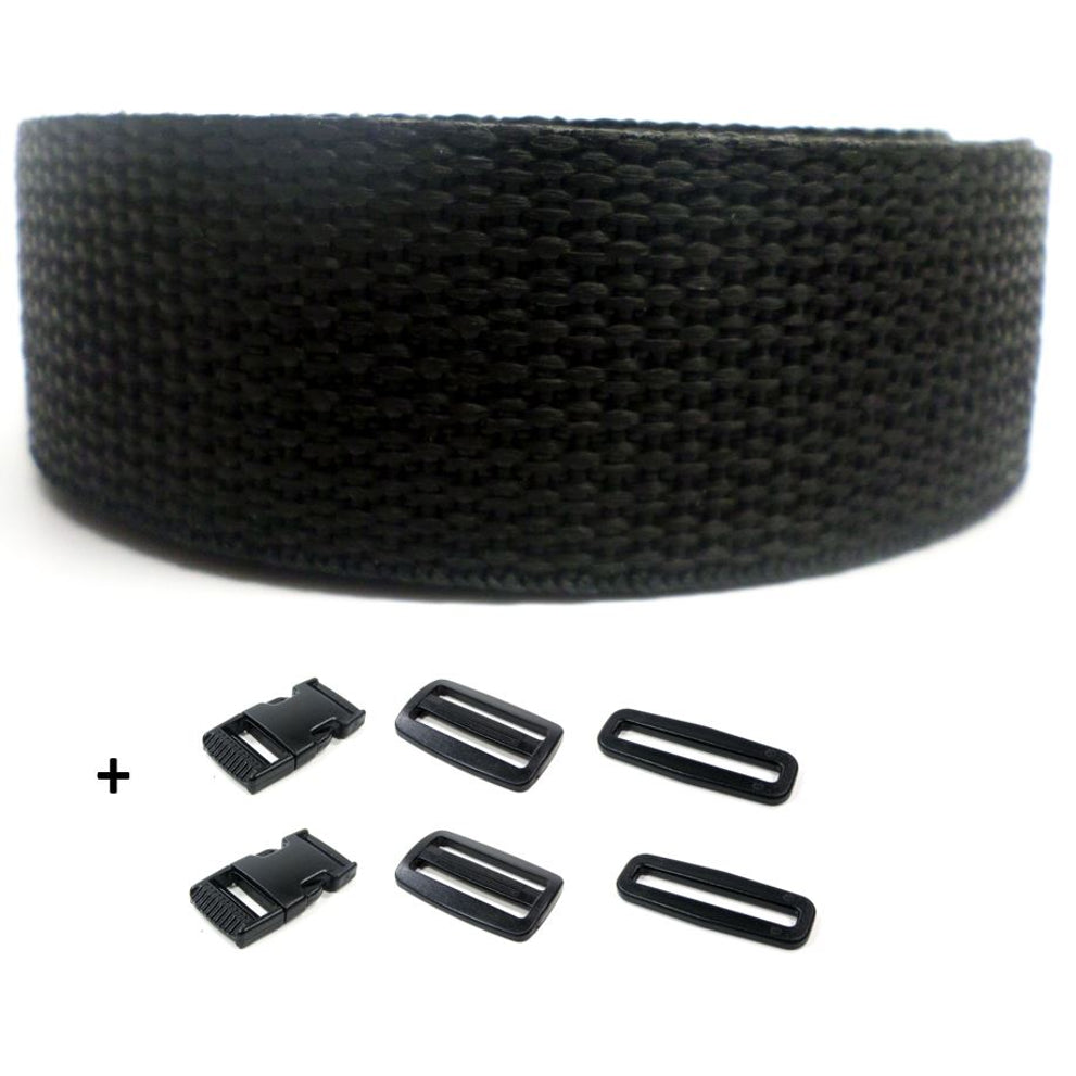 Complete set spanband zwart op rol en gespen 25 mm 10 meter