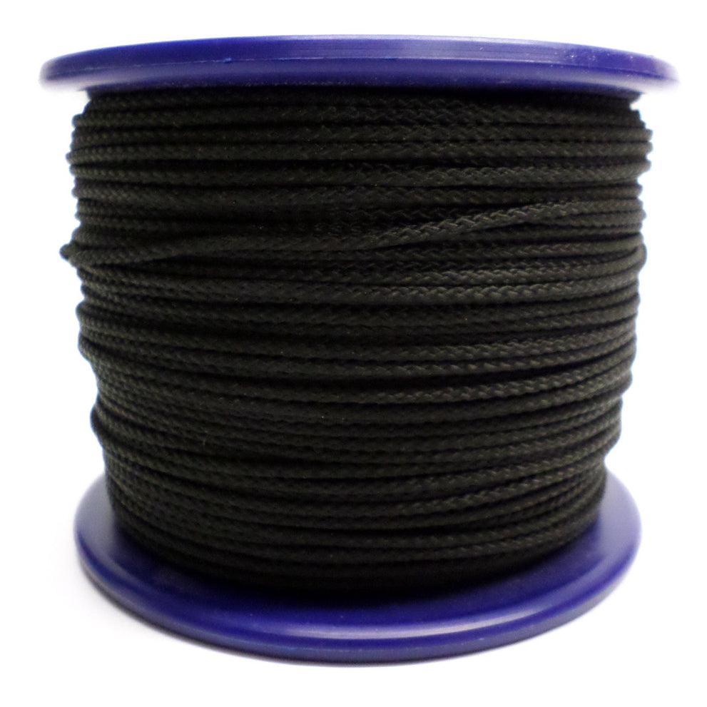 Gevlochten zwart koord 1.5 mm 100 meter op kunststof rol