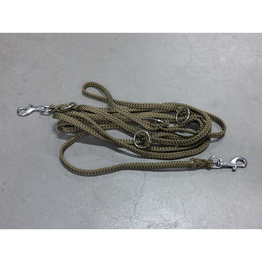 Hondenriem Jachtgroen 5 mtr verstelbaar 2 rvs musketonhaken