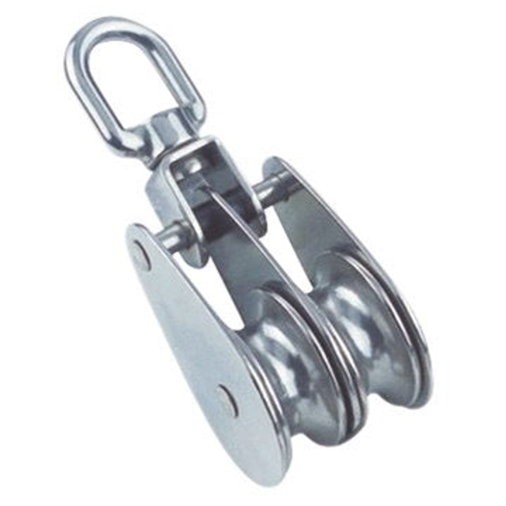 RVS dubbele katrol 25 mm met draaibare wartel