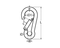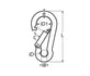 Inclusief: 2 RVS karabijnhaken. Lengte (L): 40 mm. Binnenbreedte (iB): 5 mm Binnendiameter 1 (iD1): 12 mm. Binnendiameter (iD): 9 mm Openingsbreedte (C):7 mm